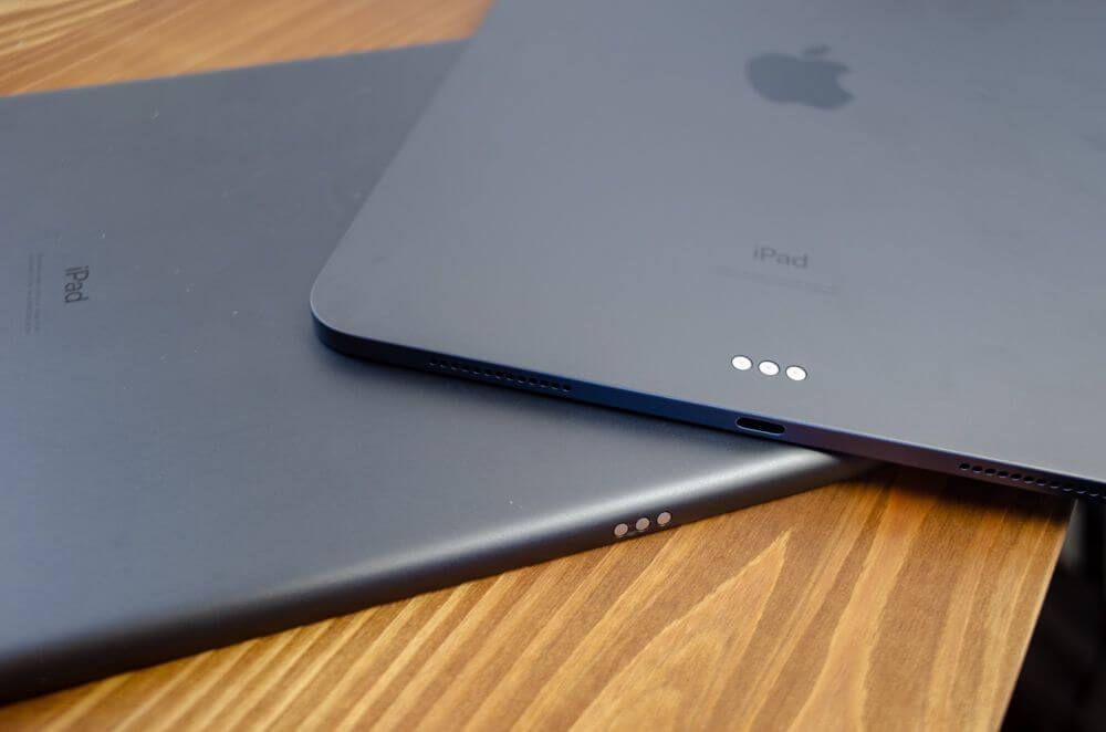 無印iPadは内蔵スピーカーが端末下に2つ搭載されているのに対し、iPad Proは端末の上部にも2つのスピーカーが搭載されており、計4スピーカー搭載で無印iPadに比べ音質が良いです。