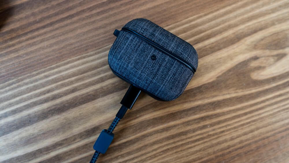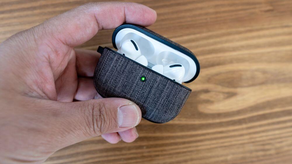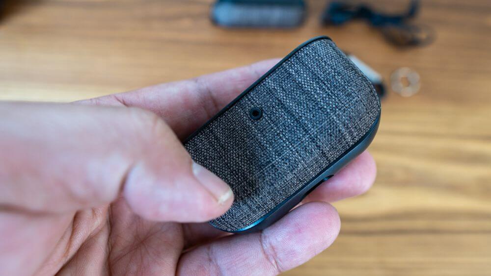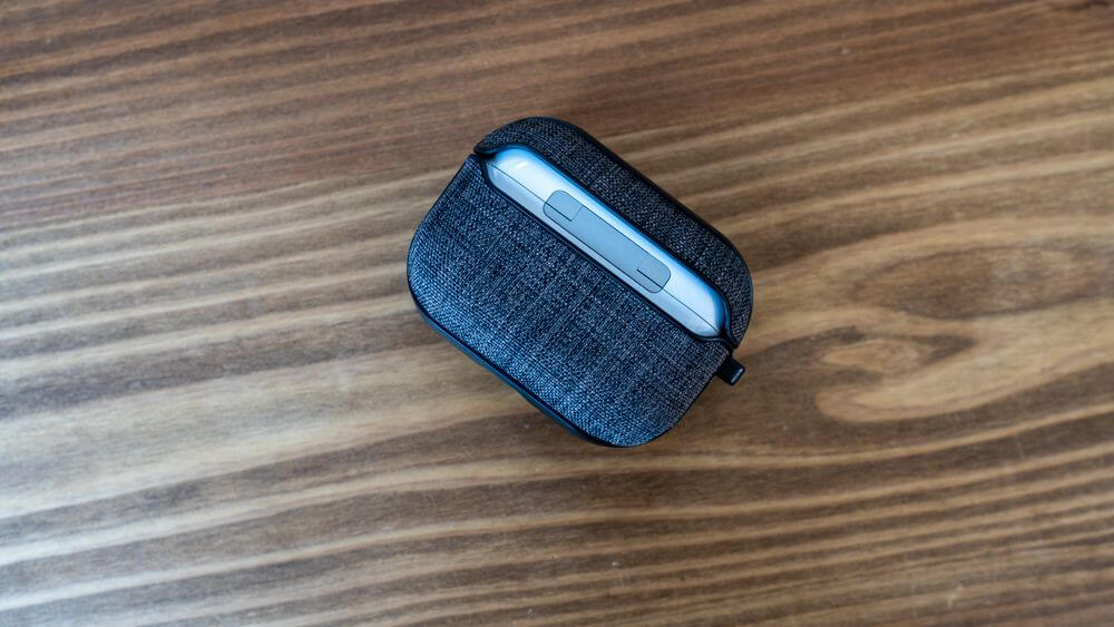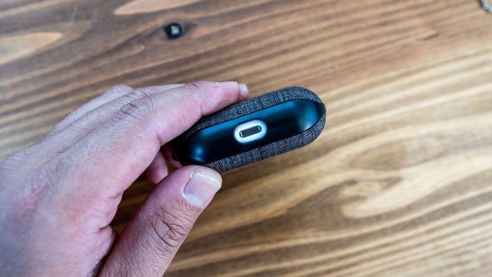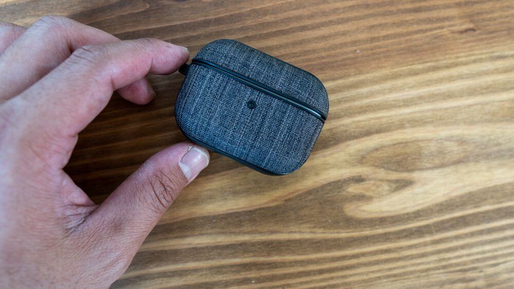 ケースの素材はキャンバス生地となっていおり、Air Pods ProのLEDインジケーターの穴もきちんと開いています。
