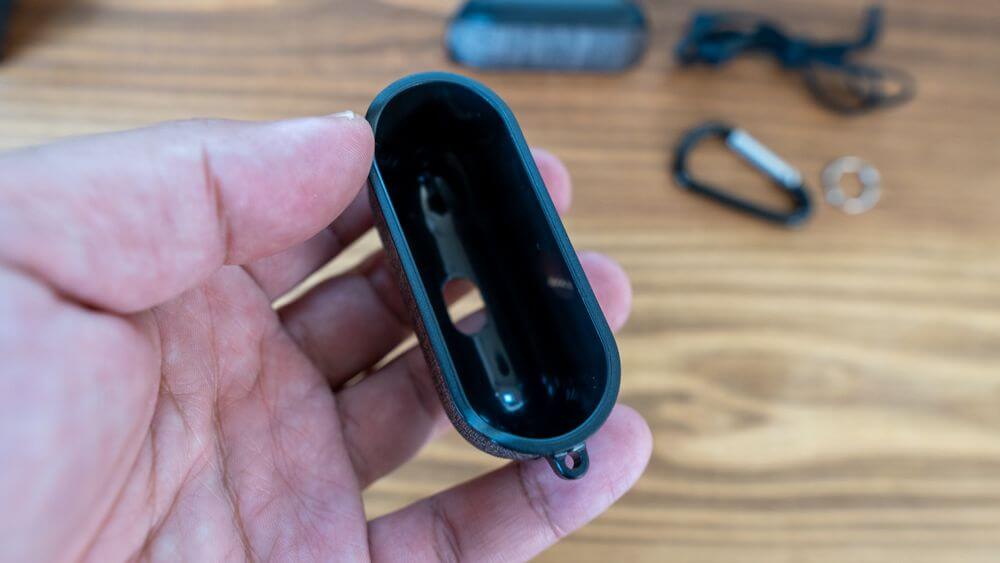 内側はプラスチック素材で構築されているので、Air Pods Proが傷つくかが心配だったのですが、いまのところ問題はなし。