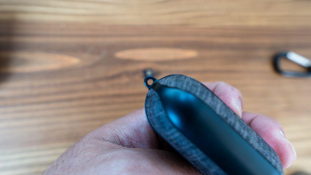 ケースサイドにはカラビナを取り付けられる穴も搭載されており、カラビナも合わせて付属されているので別途購入する必要もありません。